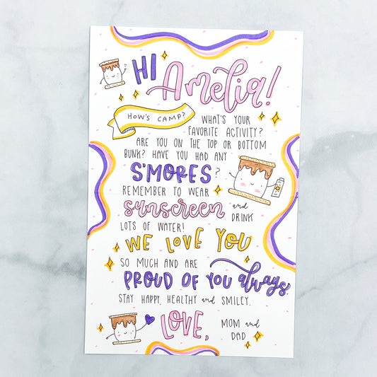 Send love and encouragement to summer campers with a handwritten card. Browse pre-printed designs and custom card options to find the perfect card for your camper.