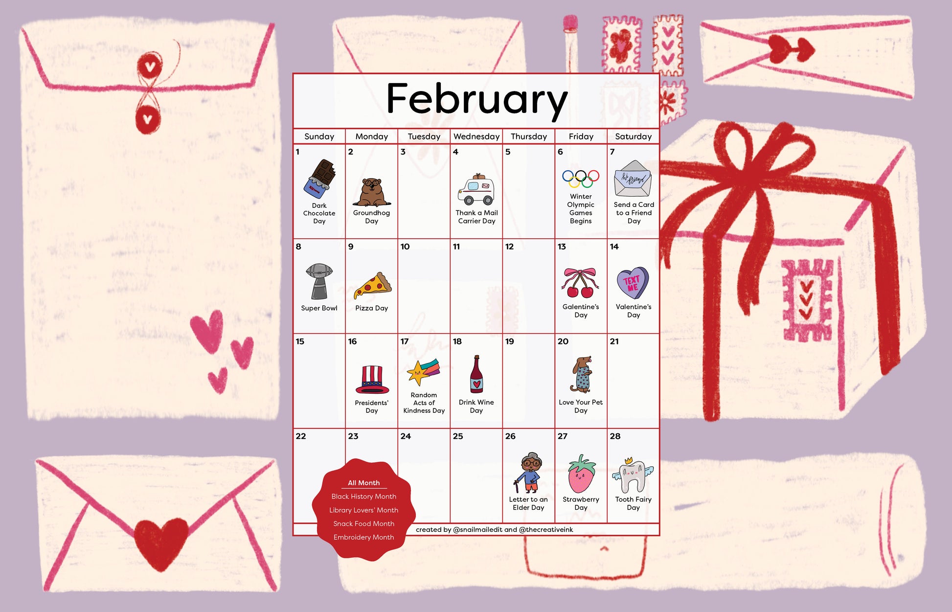 Celebrate all month with this fun digital February 2026 desktop calendar from Keisha Candido from The Creative Ink and Brenna Malmberg from Snail Mailed It.