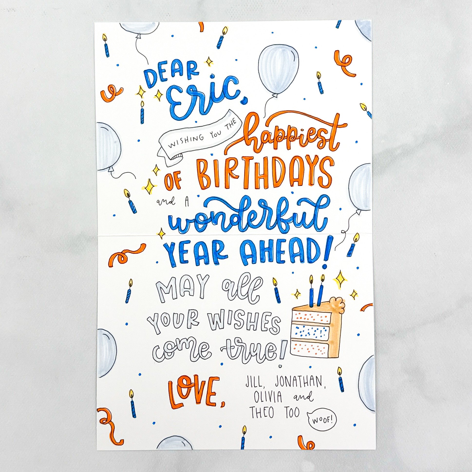 - handwritten message on the inside of the card