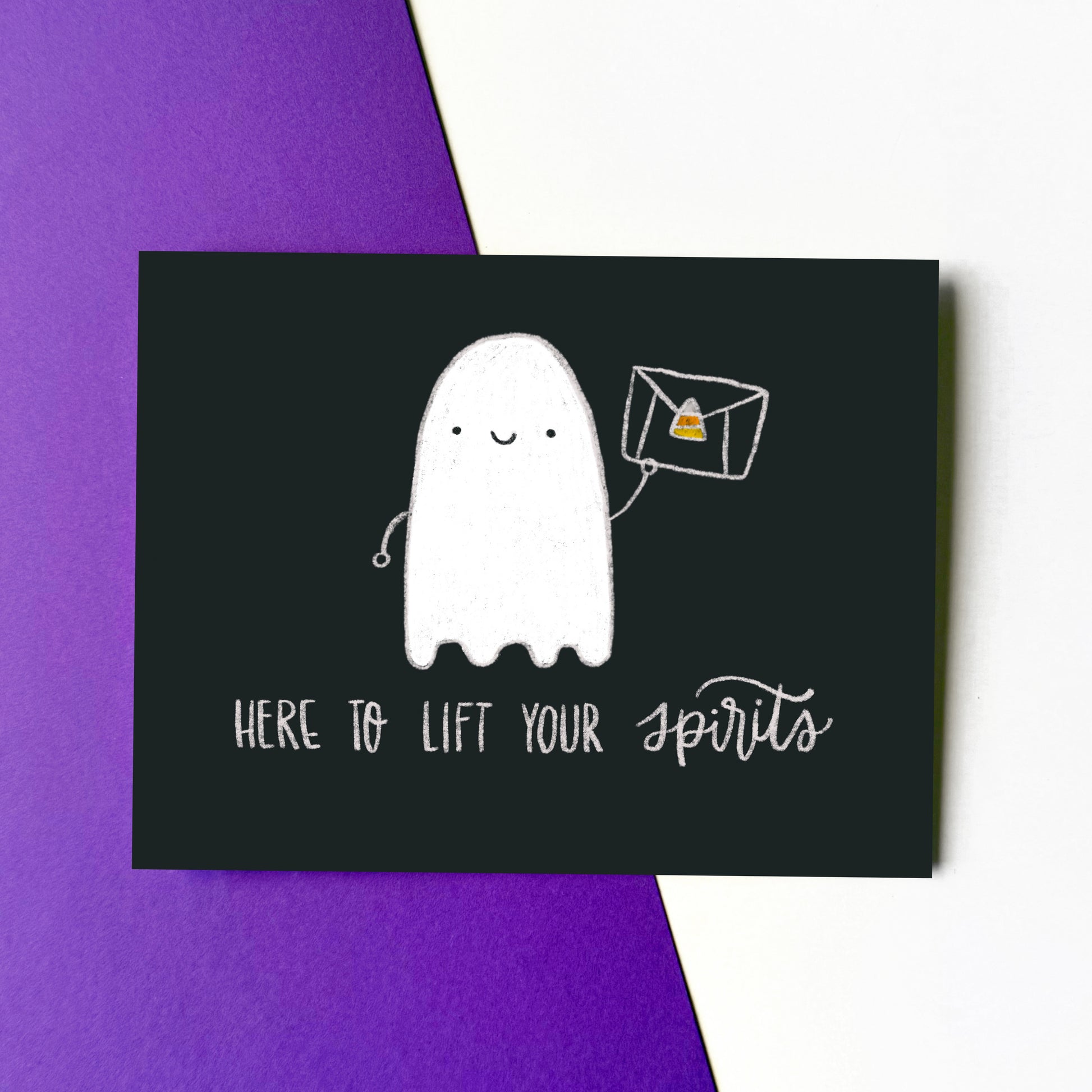 Send boo-tiful cards this Halloween season! Send tricks, treats and ghoulish smiles this Halloween with this cute ghost card. Scroll down to start customizing your Here to Lift Your Spirits card designed by Brenna Malmberg.